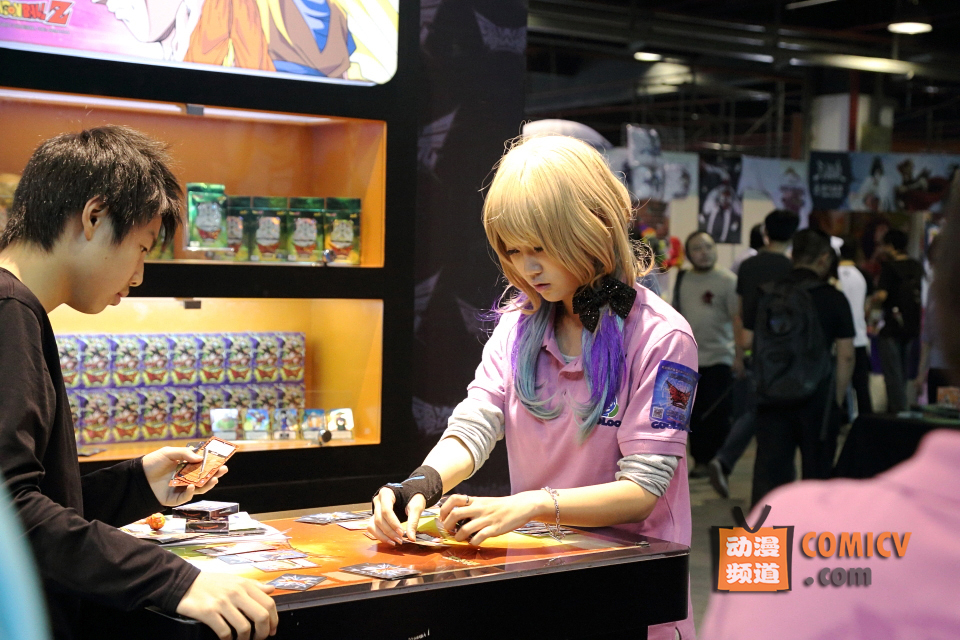 企业的入驻所带来的是更多的参展投入,三楼零次元展台提供游客集换卡牌游戏的试玩体验,同时配备着NPC讲解演示,在不远处的光大酒店中甲壳虫动漫也进行了其动漫主题的集换卡牌游戏新品发布会。