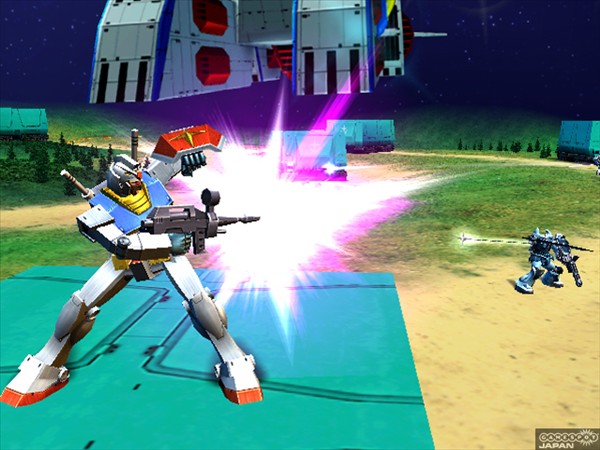 不过其惊人的弹速还是能给在远方停着不动的机体来个迅雷不及掩耳之势。如射停准备发核弹的GP02,自以为安全,架着炮击模式的坦克和陆战高达等