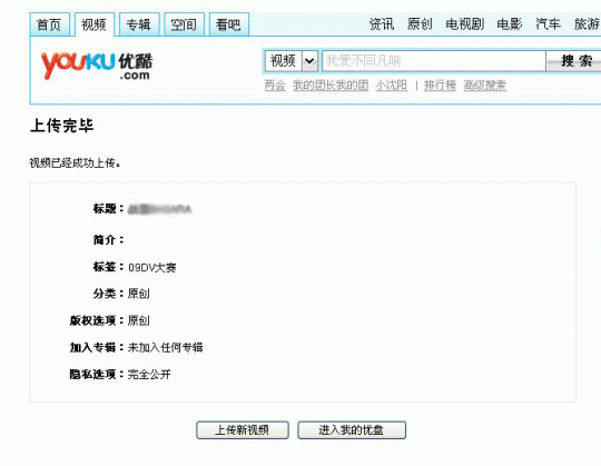 预先提交作品的参赛选手请登录优酷网www.youku.com,注册用户名后将参赛视频直接上传 ,上传参赛视频时必须为视频添加“09DV大赛”标签。
