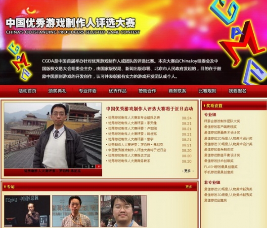“中国优秀游戏制作人评选(CGDA)”是由“第二届中国国际版权博览会”组委会和ChinaJoy组委会强强联合组织的国家级游戏制作人评比活动,评选大赛将集中展示中国游戏产业中近年来涌现出的优秀游戏制作团队和游戏作品,并对具有探索精神和卓越成绩游戏制作人给予表彰,以提高产业的竞争力和整体制作水平。