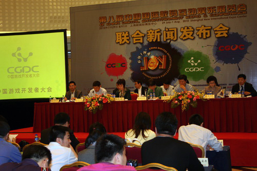 6月9日,第八届中国国际数码互动娱乐展览会(ChinaJoy)、第八届中国游戏商务大会(CGBC)、第三届中国游戏开发者大会(CGDC)以及首届中国游戏外包大会(CGOC)在上海国际会议中心联合举办新闻发布会。包括来自行业主管机构、中外企业、各大媒体记者在内的近200人出席了新闻发布会。
