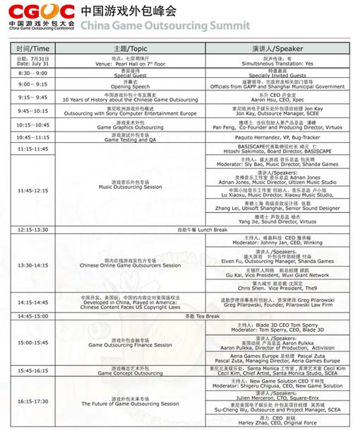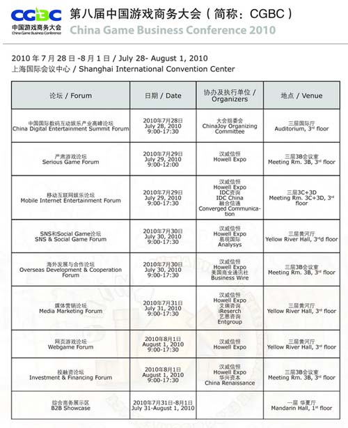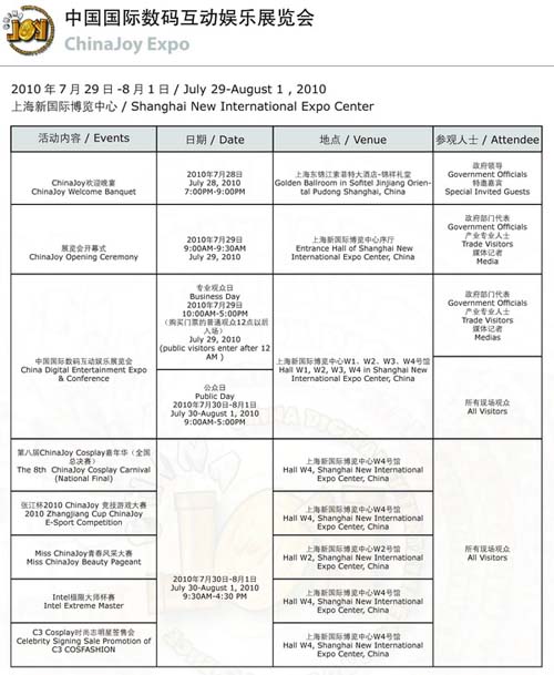 全部日程下载地址:http://www.chinajoy.net/upload/2010/schedule.pdf