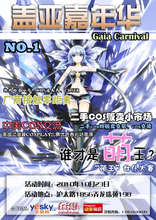 首届“Gaia Carnival” 盖亚嘉年华将在金秋10月为你带来一场别开生面的动漫游戏盛会。融合时下流行的COSPLAY、同人歌曲表演、同人志贩卖、动漫COS周边贩卖、桌游等各类动漫游戏相关内容。为参观者带来一次全方位的动漫文化体验之旅。