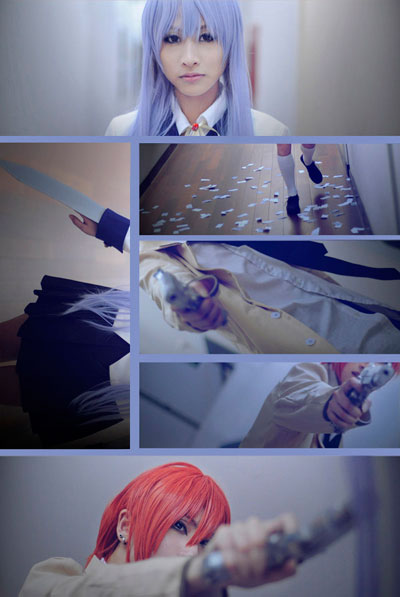 看,那流弹划破夜空的曳光,轰轰烈烈的激战居然只是为了争夺口无属性的天使以及追星的NPC们那樱花吹雪般漫天飞舞的饭票……总会让人产生一边看轻音一边在打游戏的错觉。《Angel Beats!》在封面大赛华丽上演了一场“一张饭票引发的血案”。