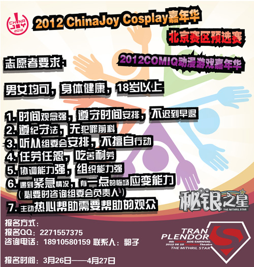 2012 ChinaJoy Cosplay嘉年华北京赛区预选赛暨秘银之星Cosplay大赛志愿者招募咯!