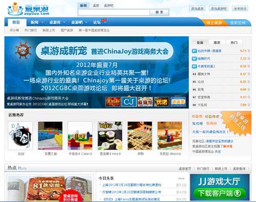 爱桌游网 (www.zoyooo.com)是JJ比赛旗下、国内最早创建的桌面游戏以及桌上棋牌类游戏的门户平台;是五千万棋牌玩家共同拥有的桌面游戏社区;爱桌游网拥有国内最新最全的桌游资讯以及众多资深桌游玩家!玩家在社区还可以凭借积分淘到很多免费的桌游!