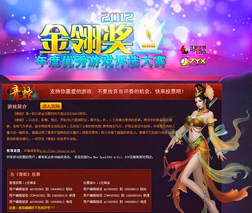 金翎奖活动页面:http://www.chinajoy.net/2012award