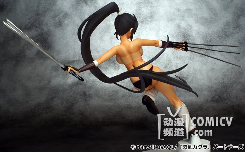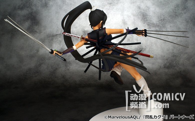 霸气侧漏~~~由3DS爆乳动作游戏《闪乱神乐:少女们的真影》改编的漫画『闪乱神舞』年底又出新手办,六刃在手呈飞跃而起的动态姿势,背面的刀鞘也一应俱全,但紧裹的大胸只是浮云,卸下装备后的背影才是真正亮点!