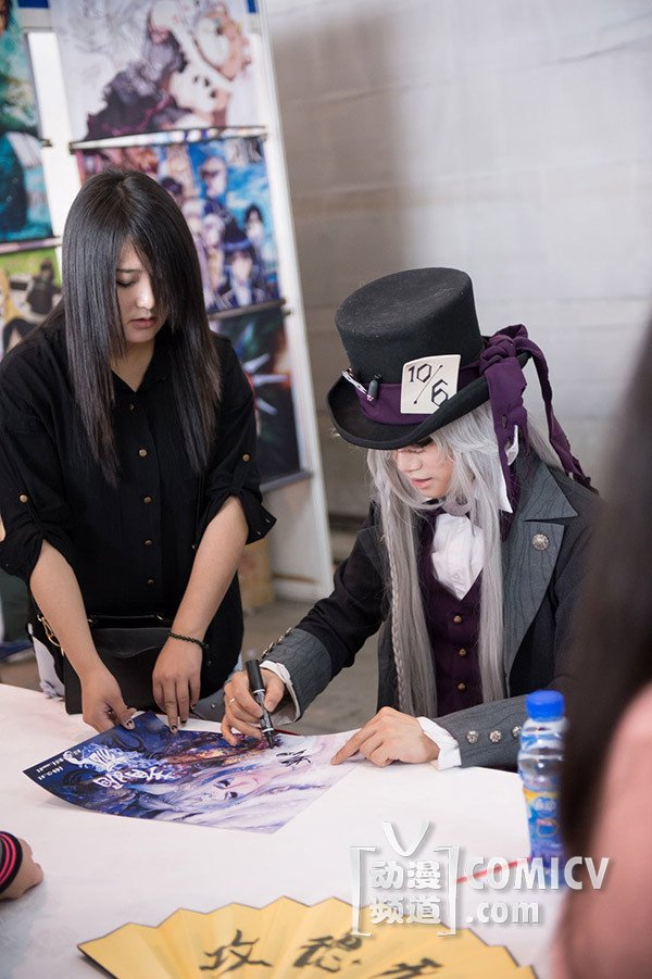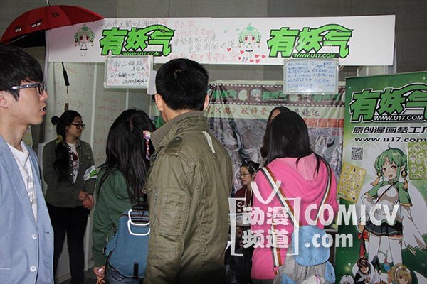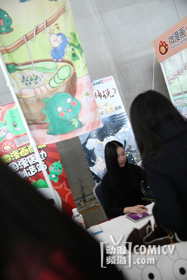本次邀请到了有妖气及旗下知名漫画家《虎X鹤妖师录》黄晓达,微漫画及旗下知名漫画家《跟我一起去欺负小恐龙》达达和《血族传说》砚七,以及知名COSER曲豆,他们让签售区排起了长长的队伍。