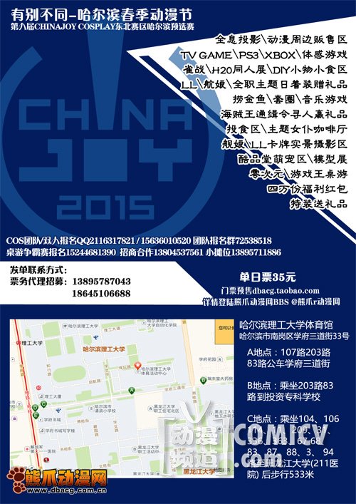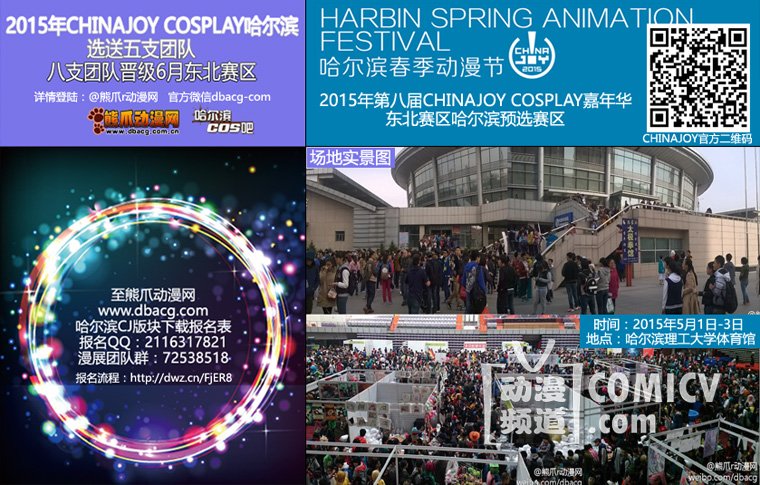 一年一度黑龙江动漫爱好者们的盛会——2015 ChinaJoy Cosplay嘉年华东北赛区第八届哈尔滨分赛区将于5月1日至5月3日在哈尔滨理工大学体院馆举行。