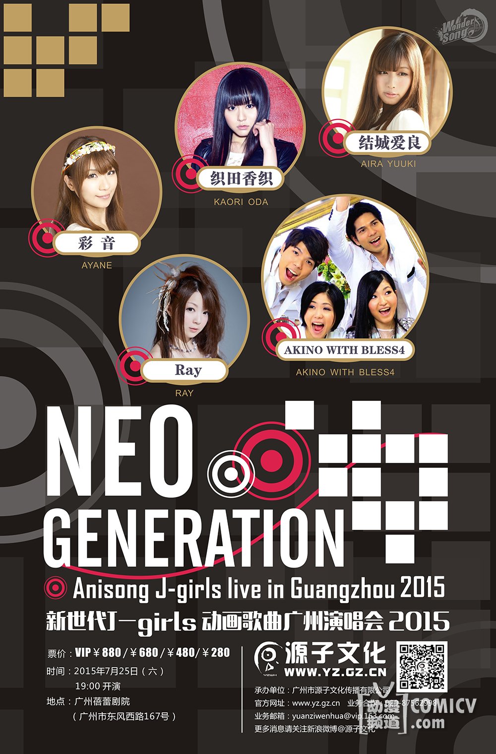 超赞的对不对!超赞的有没有!属于新生代歌手的,属于广州所有动漫爱好者的演出,NEO GENERATION 2015 Anisong J-girls live in Guangzhou!演出门票正在发售,请大家一定不要忘了关注源子文化的新闻与公告喔!