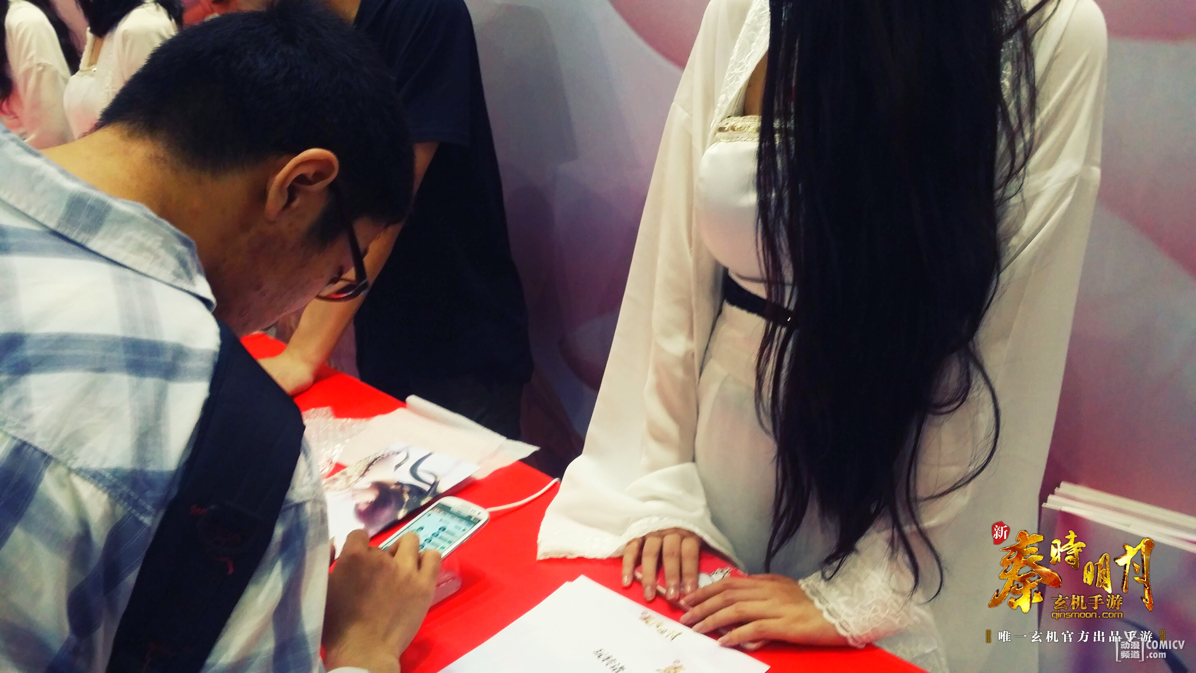 Cosplay作为CCG EXPO的招牌一直都是众多动漫爱好者的主菜,今年的玄机科技展台COS阵容尤其给力!展台现场数位面貌姣好的妹纸身着秦风华服,一对一手把手的陪玩观众试玩游戏,看的小编垂涎三尺;展台另一侧,由少司命领先的包括白凤、乌鸦在内的游戏角色一一登场,阵容相当豪华!
