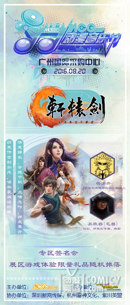 情意绵长,会绝千秋。虎啸龙吟,神魔莫开。历史作古剑如风,啸林震渊话轩辕。轩辕剑制作人杨渊升、编剧作曲吴欣睿驾到!专属签名会,展区游戏体验限量礼品随机掉落!