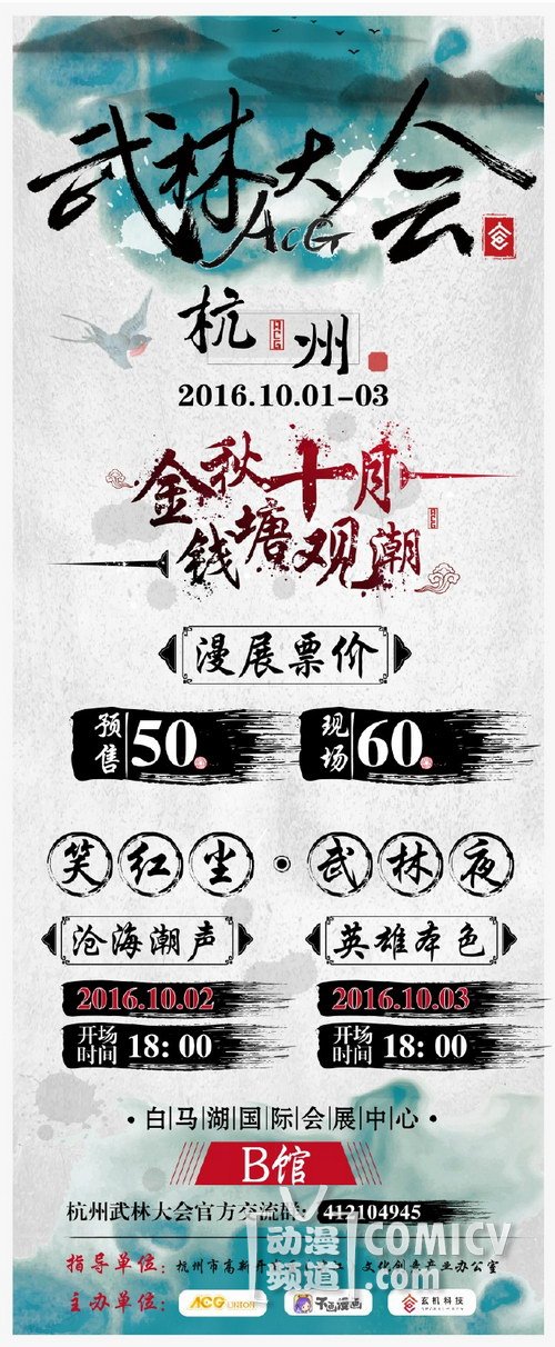 金秋十月,钱塘观潮,武林大会,风云再起,杭州ACG武林大会再续前缘,10月1日-10月3日,白马湖国际会展中心国庆假日轰趴来袭!