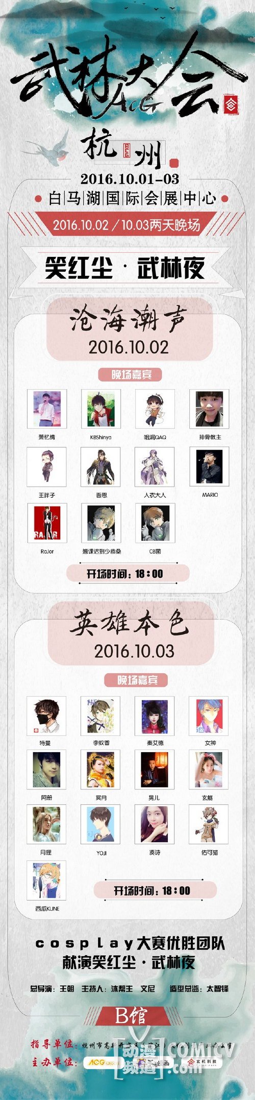 白天漫展王府、黑天、杭州304文化领衔人气coser,穿越次元,现世江湖,更有实力唱将,ACG音乐人献声武林,画师写手,妙笔生花!