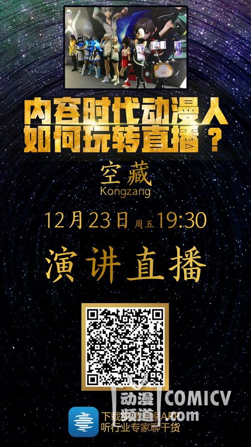 空藏Kongzang:“我的演讲适合想玩直播的漫画作者、动画团队、周边制作、动漫媒体、漫展活动主办、动漫项目运营、商务、市场人员等动漫产业链上的各类从业者,及对直播感兴趣的你^0^” 此等干货,节省了亲的时间和精力,避免了亲的重复劳动,此等奉献分享精神,ACG小圈圈必须大力推荐。