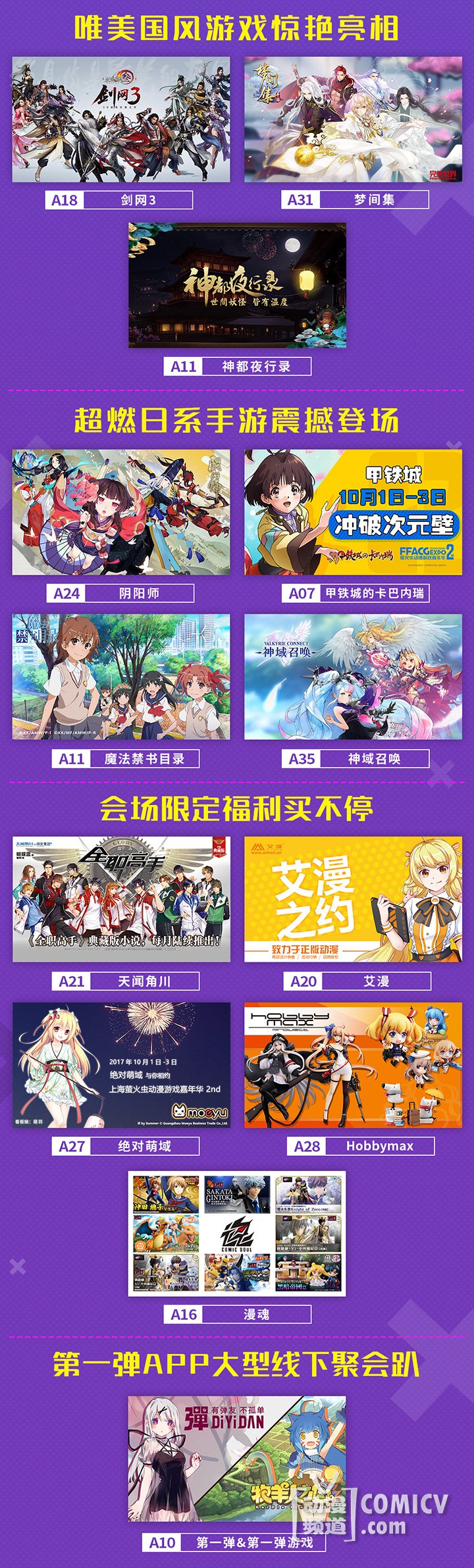 游戏厂商方面,不仅有盛大游戏-神无月、神域召唤等诸多二次元新游参上,更有阴阳师、《魔法禁书目录》正版手游、神都夜行录、非人学园等网易游戏人气手游强势直参;剑网3重制版携重磅嘉宾落地现场;《甲铁城的卡巴内瑞》正版手游加盟,现场还原骏城和1:1无名等身手办!