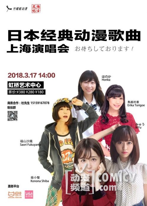 人气歌姬集结!福山沙?、柴小?、ほのか、みゅう、?越衿香倾情加盟。2018年3月17日下午14点,上海虹桥艺术中心,日本经典动漫曲目重新演绎,曾经的旋律带来耳朵重新的体验。不能错过的音乐盛会,这是正经的预告o(*???)ツ