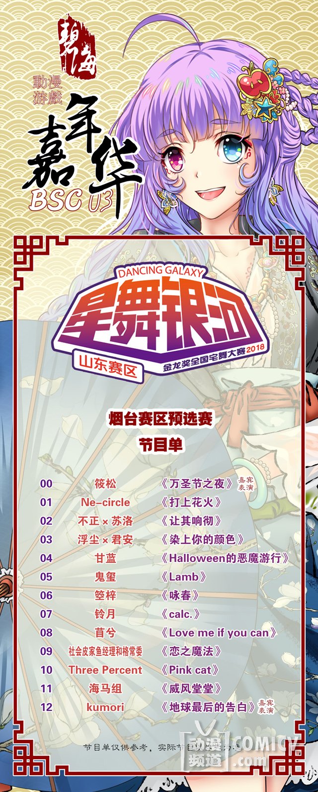 今日终宣放出场地图&活动时间表情报!旅游大世界首次开放二层,展会全天活动丰富多彩,诸多国产动画正版周边上新,还有嘉宾们的见面会、签售、表演环节,以及金龙奖“星舞银河”全国宅舞大赛山东赛区之烟台预选赛的精彩演出!另外提醒一下各位,今天是宅舞大赛报名的最后一天哦!还没报名的小伙伴要抓紧最后的时间啦!1000元团体赛冠军奖金和500元个人赛冠军奖金正在朝你招手!而且,只要报名参赛就有参与奖哦!