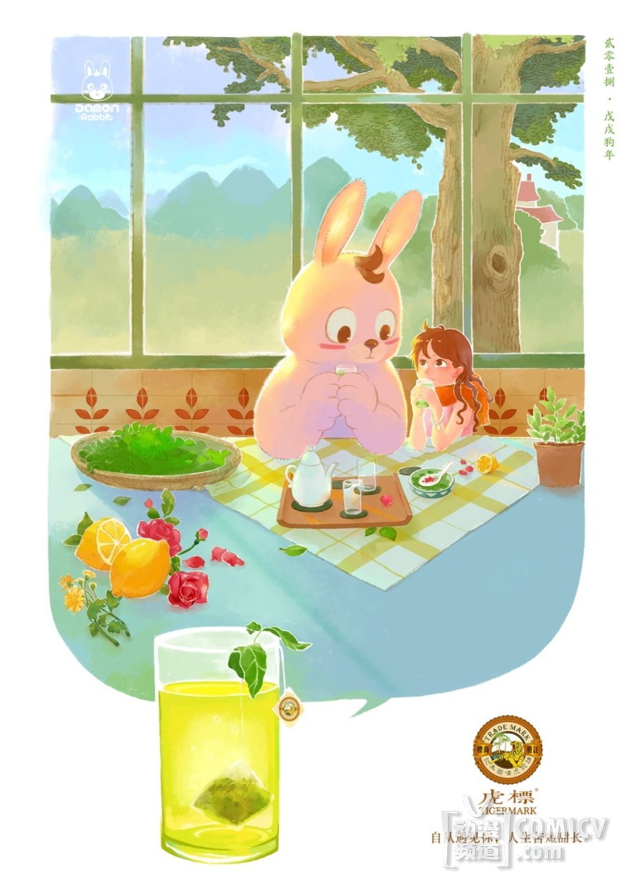 此次“呆毛兔Damon”跨界香港虎标,以Q萌的“呆毛兔Damon”形象结合健康生活理念,在翻滚着热浪的的夏季,以天然选材、不含香精、无添加的花草茶袋泡茶饮品,为大众带来专属这个夏天的的清凉与陪伴。