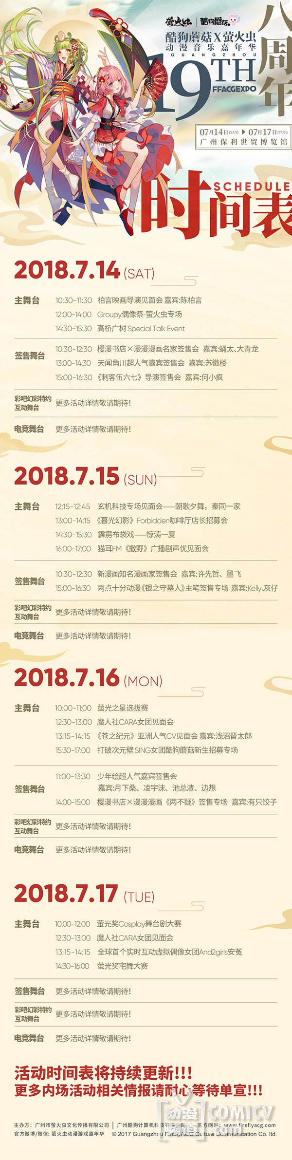 三馆齐开!!四天狂欢!!7月14-17日,酷狗蘑菇·萤火虫动漫音乐嘉年华19th即将盛大登陆广州保利世贸博览馆4、5、6号馆!本届漫展由萤火虫和酷狗音乐联合主办,届时将有近百位海内外二次元超红星齐聚妖都,必将给小伙伴们带来最好玩的动漫音乐嘉年华狂欢!!!