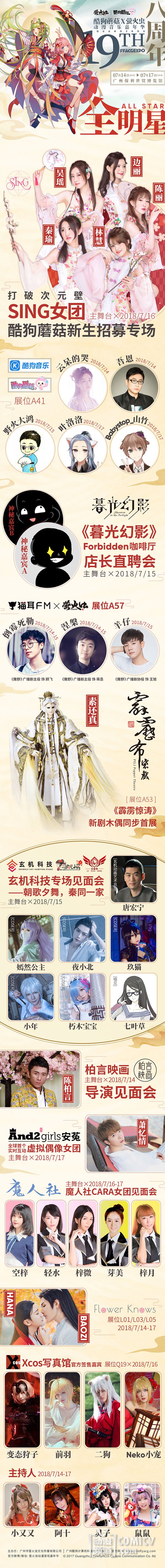 而今天,小伙伴们最最期待的全明星阵容首次公开!!!!游戏制作人、导演、监督、演员、声优、唱见、舞见、作者、漫画家、画师、coser、主播、lo娘、潮牌设计师、女团小姐姐……主舞台、电竞舞台、签售舞台、互动舞台,四大舞台活动精彩不断!凡你所想!应有尽有!话不多说,快来迎接这个爆炸的阵容吧!!!!