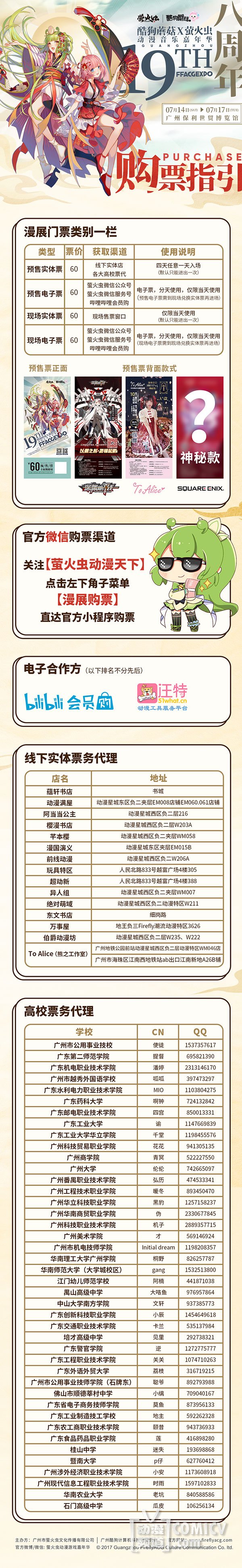 看了这么多有关7月萤火虫漫展的情报,是不是已经很期待了呢?那就快来看看如何购买预售票吧!本届漫展预售票&现场票统一票价为60元,现已开启官方微信公众号、bilibili会员购、高校票点、实体店票点等购票渠道~