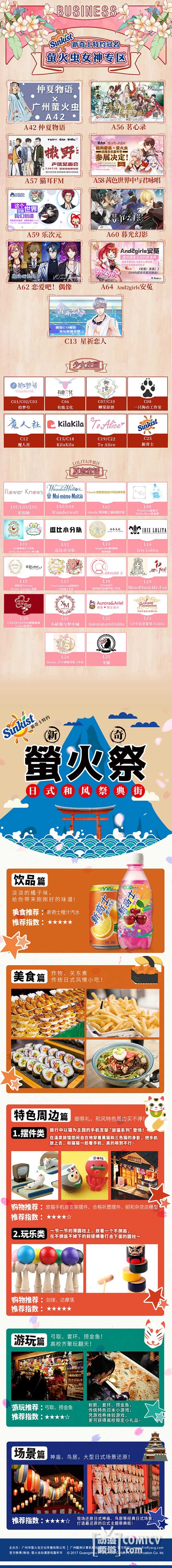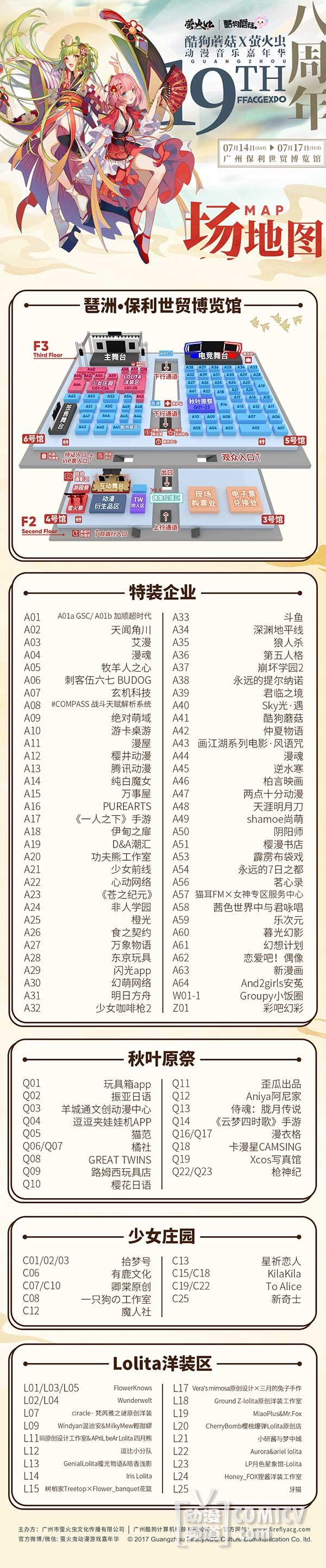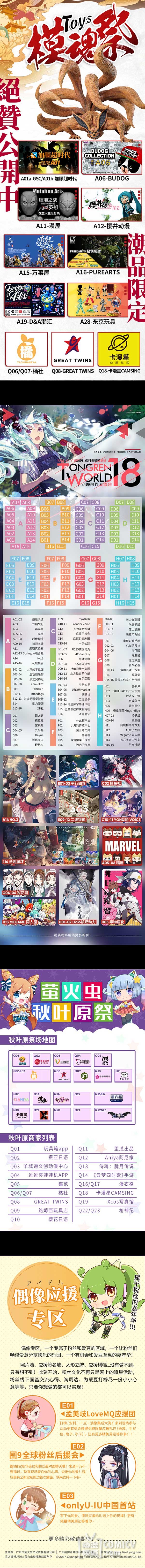 除了豪华的嘉宾阵容以外,展商阵容也非常强势!国风国创专区、游戏娱乐区、正版模魂祭、TW同人区、秋叶原祭、偶像应援互动区、新奇士特约冠名·萤火虫女神专区&萤火祭,八大特色专区让你眼花缭乱!!快来了解一下吧~更多会场限定福利敬请关注虫娘官博@萤火虫动漫游戏嘉年华 吧!