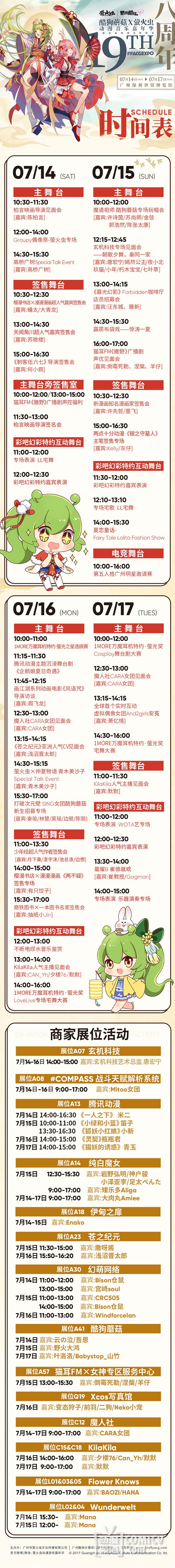 倒计时半个月,广州保利世贸博览馆4、5、6号馆,酷狗蘑菇·萤火虫动漫音乐嘉年华19th即将火热开展!本届漫展由萤火虫和酷狗音乐联合主办,豪华实力参展商火力全开,八大特色专区让你眼花缭乱!过百海内外二次元超红星齐聚妖都,四大舞台活动精彩不断!三馆齐开!!四天狂欢!!7月14-17日,虫娘与你不见不散~