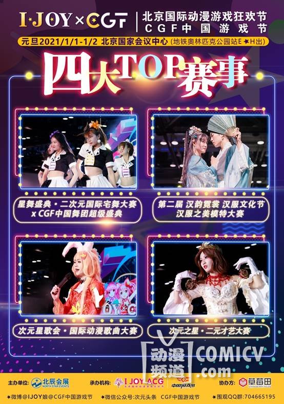 小伙伴们速速high起来!1月1-2日北京国家会议中心I JOY × CGF漫展赛事播报:四大顶级舞台赛事报名火热进行中!二次元超趴踢精彩Live即将呈现!“星舞盛典”二次元国际宅舞大赛、次元星歌会-国际动漫歌曲大赛、次元之星-二次元才艺大赛、汉韵霓裳·汉服之美模特大赛。四大赛事燃爆全场、数万奖金等你来拿。